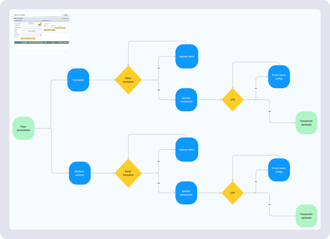 I mapped the most critical business actions (payments, transfers, approvals) and redesigned them to remove unnecessary steps, prioritizing speed and clarity.